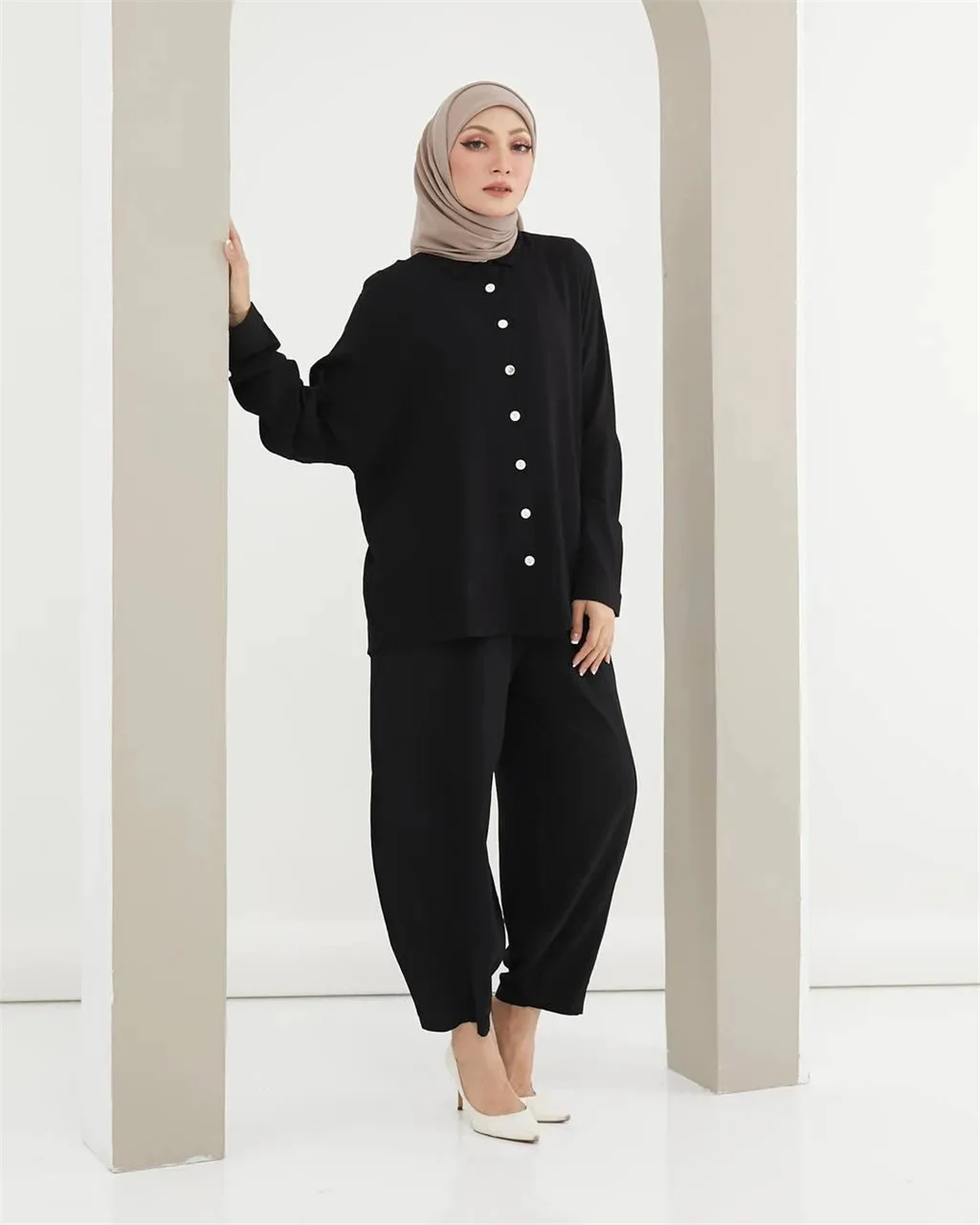 Indonesia Harem Pants Bat Sleeve Loose Leisure Suit - Black