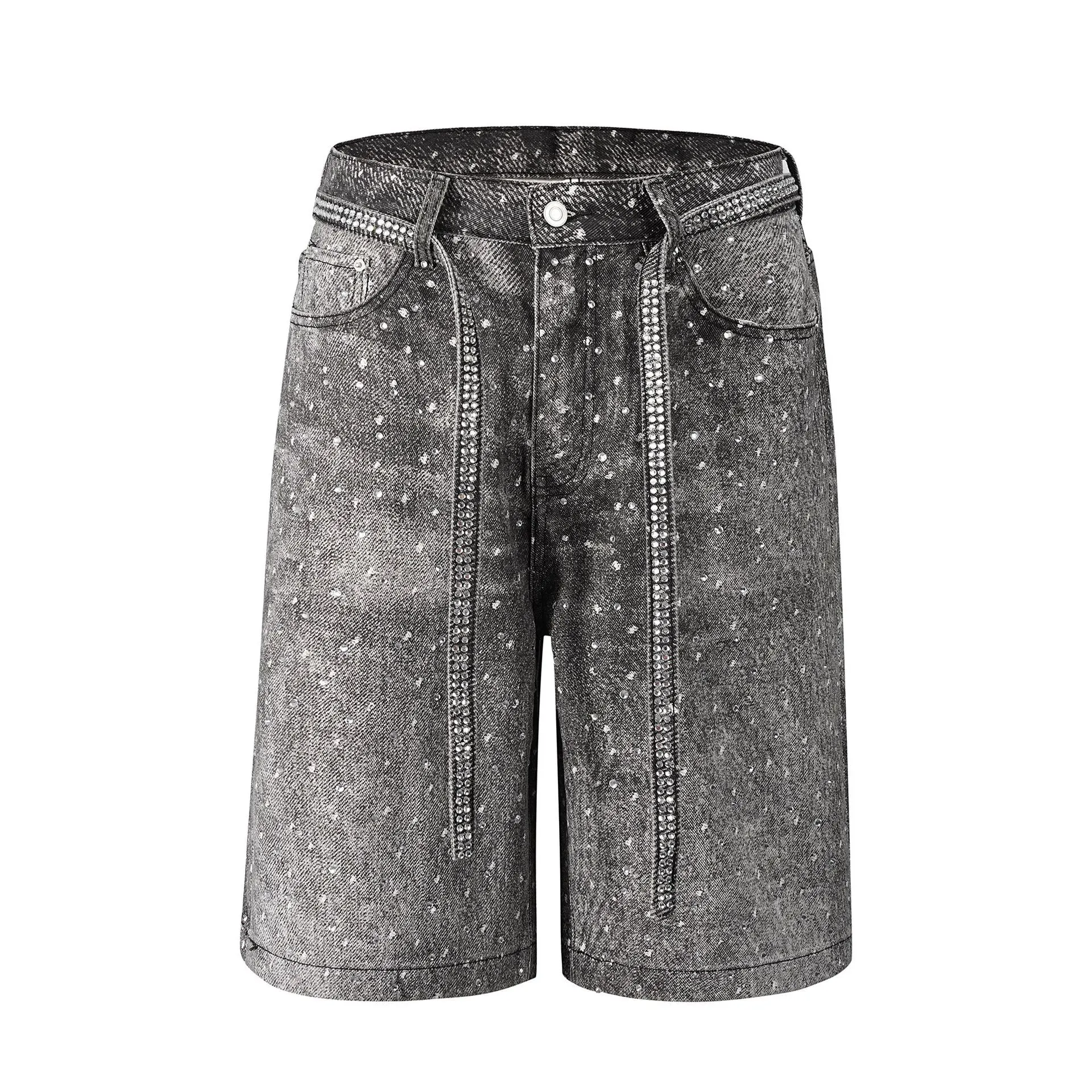 Style Washed Rhinestone Belt Belt Denim Shorts -