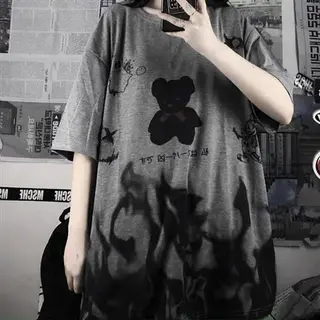 Ins summer t-shirt female loose fitting bear series short sleeve printing Student Korean graffiti trend new style dark black shirt Version: Loose Collar type: Round neck Popular elements: Splicing