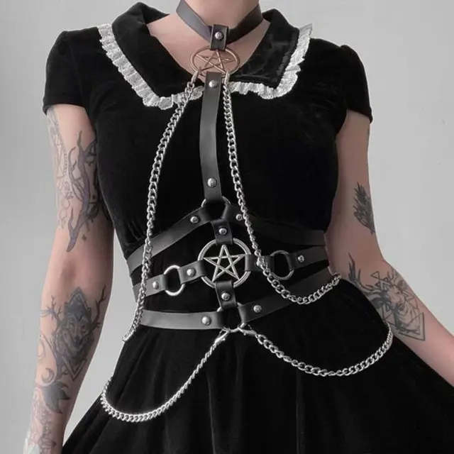 Iron Chain Five-star Halter Ornament Integrated Chain Belt - Black