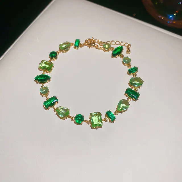 Irregular Geometric Zircon Drop-shaped Bracelet - Golden Light Green
