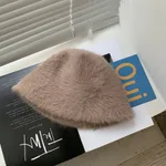 -style Retro All-match Face-covering Rabbit Fur Bucket Hat - Coffee