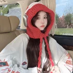 Knitted Wool Lace-up Earmuffs Hat - Red