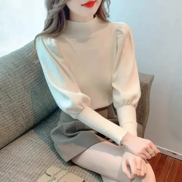 Knitwear Bottoming Slim Puff Sleeve Pullover Wool