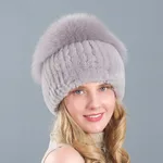 Specification: Product category: Knitted hat Applicable gender: Female Material: Rex rabbit fur/fox fur Style: all-match Knitting method: Hand hook Processing method: Sewing strip Popular elements: Stitching Pattern: Color matching Eaves shape: Flat eaves Top style: Dome Hat style: No eaves