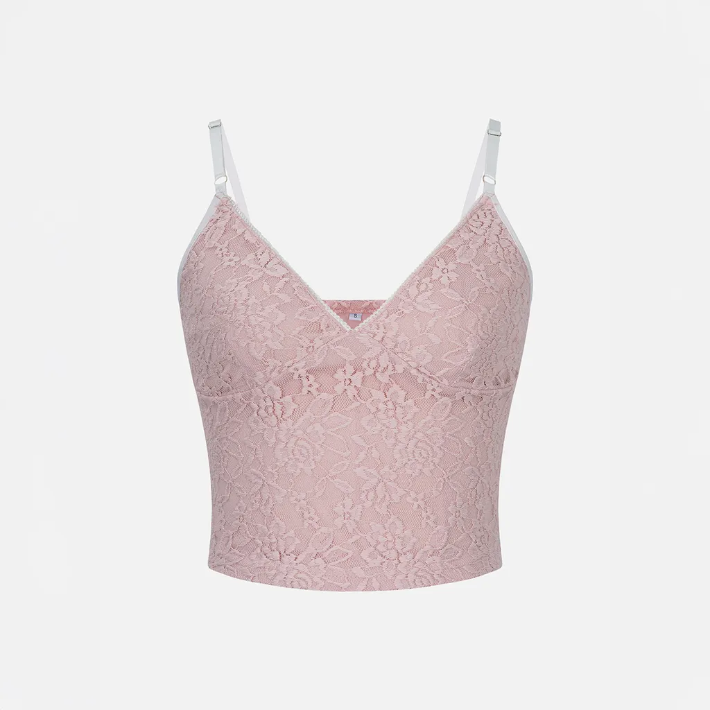 Lace Embroidery Spaghetti-strap Camisole Top Clothing - Pink