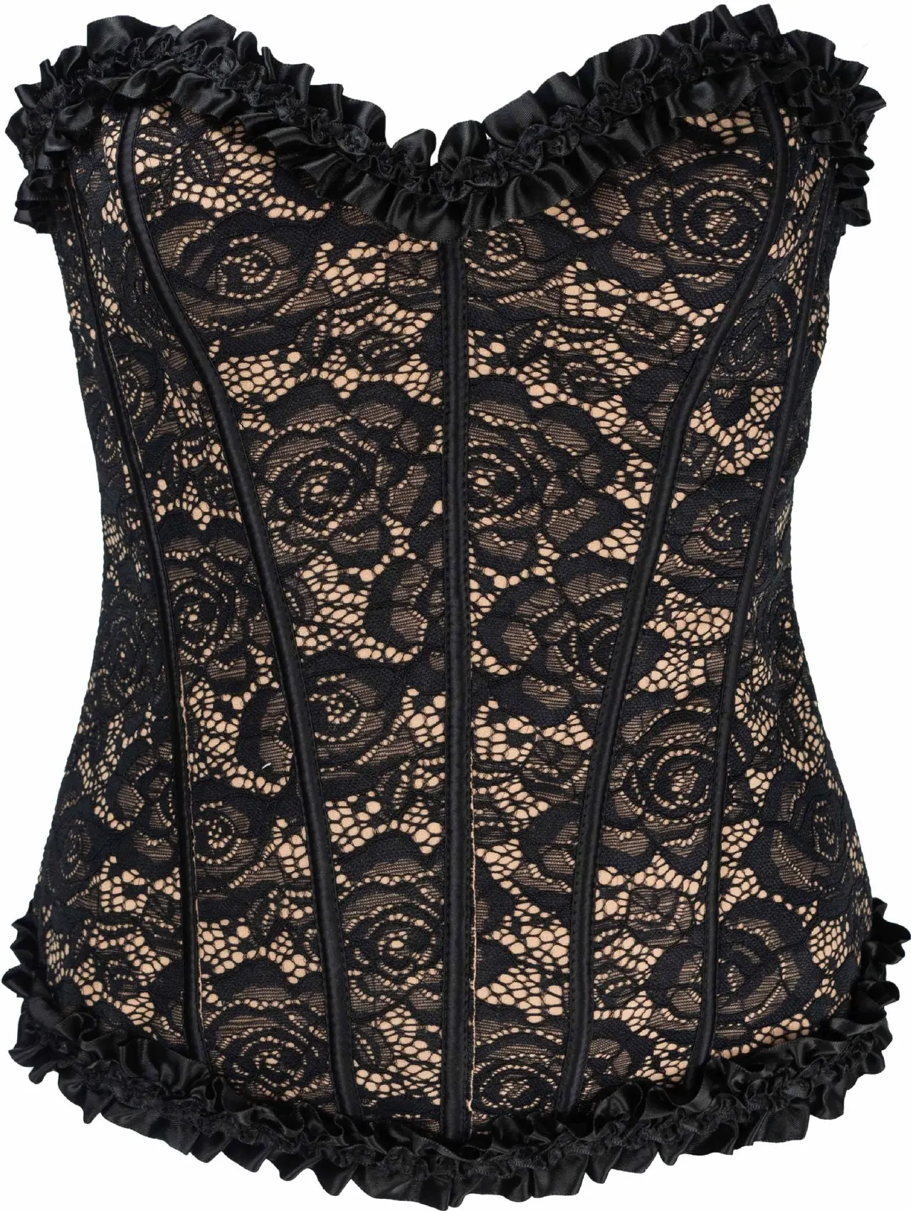 Lace Fabric Steel Buckle Corset - Black