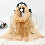 Embroidered Gold Silk Scarf Embroidered Cheongsam Shawl - Yellow