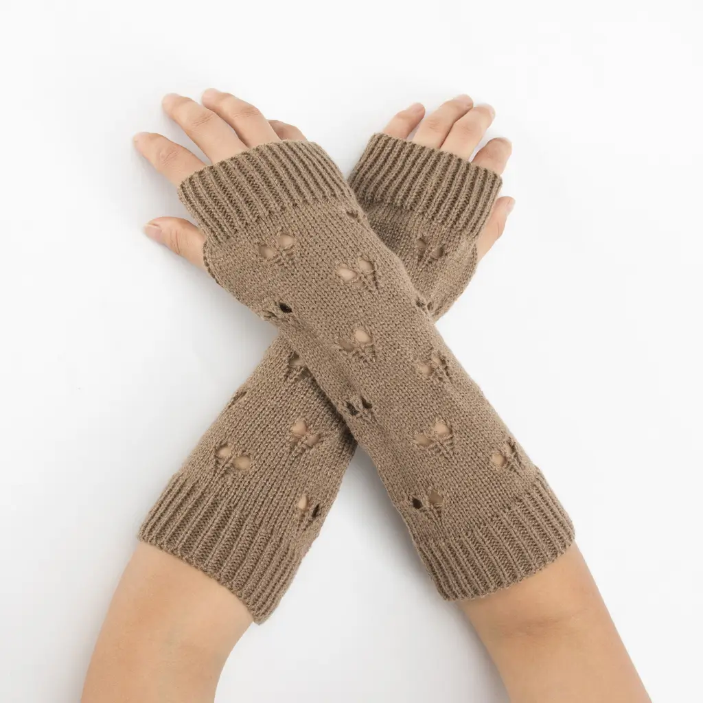 Jacquard Love Knitted Wool Warm Arm Cover - Khaki