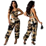 Product Information: Style: Sexy Pattern: Printing Style: pants suit Top style: vest Top sleeve length: sleeveless Pants style: straight pants Length: trousers Popular elements: stitching Craft: collage/splicing Fabric name: Knitting Main fabric composition: polyester fiber (polyester) The content of the main fabric ingredient: 91%-99% Color: 01 multi-color, 02 black and gold Size: S, M, L, XL, XXL Size Information: Prevention: 1. Asian sizes are 1 to 2 sizes smaller than European and American people. Choose the larger size if your size between two sizes. differences due to . 2. Please check the size chart carefully before you buy the item, if you don't know how to choose size, please contact our customer service. 3.As you know, the different computers display colors differently, the color of the actual item may vary slightly from the following images. Packing List: Fabric ladies vest x1 trousers x1