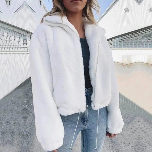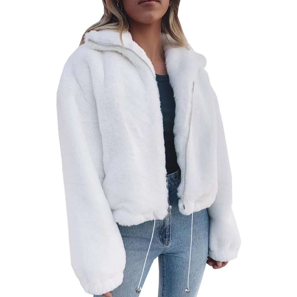 Ladies solid color imitation rabbit fur coat