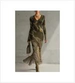 's Long-sleeved Long Dress - Army Green