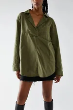 Lapel Slimming Shirt Denim Coat - Green