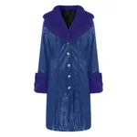 Lapel Long Coat Fur Collar Temperament Zipper Pu Jacket - Blue