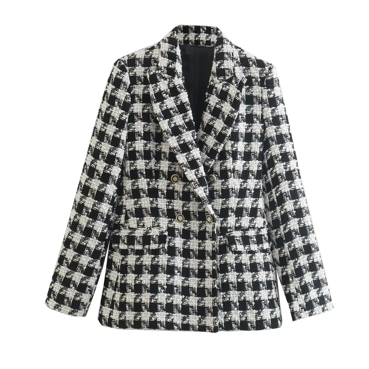 Lapel Long Sleeve Double Breasted Houndstooth