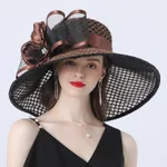 Large-brimmed Hat With Mesh Flower Decoration For Shading - Brown