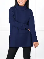 Multicolor Minimalism Turtleneck Top - Sapphire