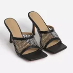 Lazada Square Head Mesh Slippers High Heels Sandals - Black