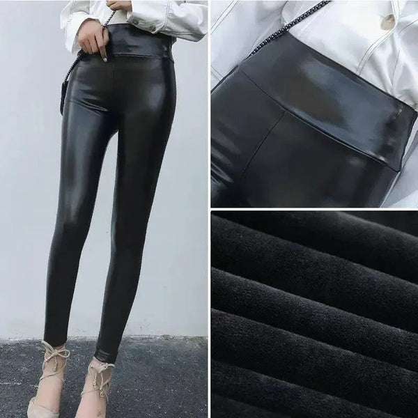 Leather Pants Women's Thick Large Size High Waist PU Leather