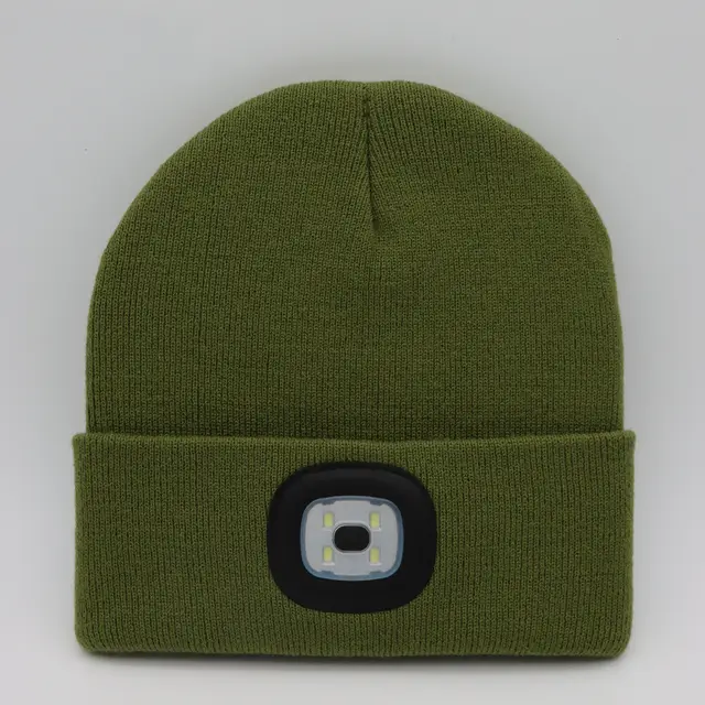 Led Knit Hat Button Cell Type Knitted Hat With Light Glowing - Army