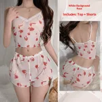 Leopard-print Pajama Set For Camisole And Shorts - White