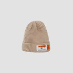 Letter Labeling Ear Protection Wool Knitted Hat - Beige