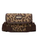 Letter Wide Shoulder Strap Leopard Print Small Square Bag - Leopard