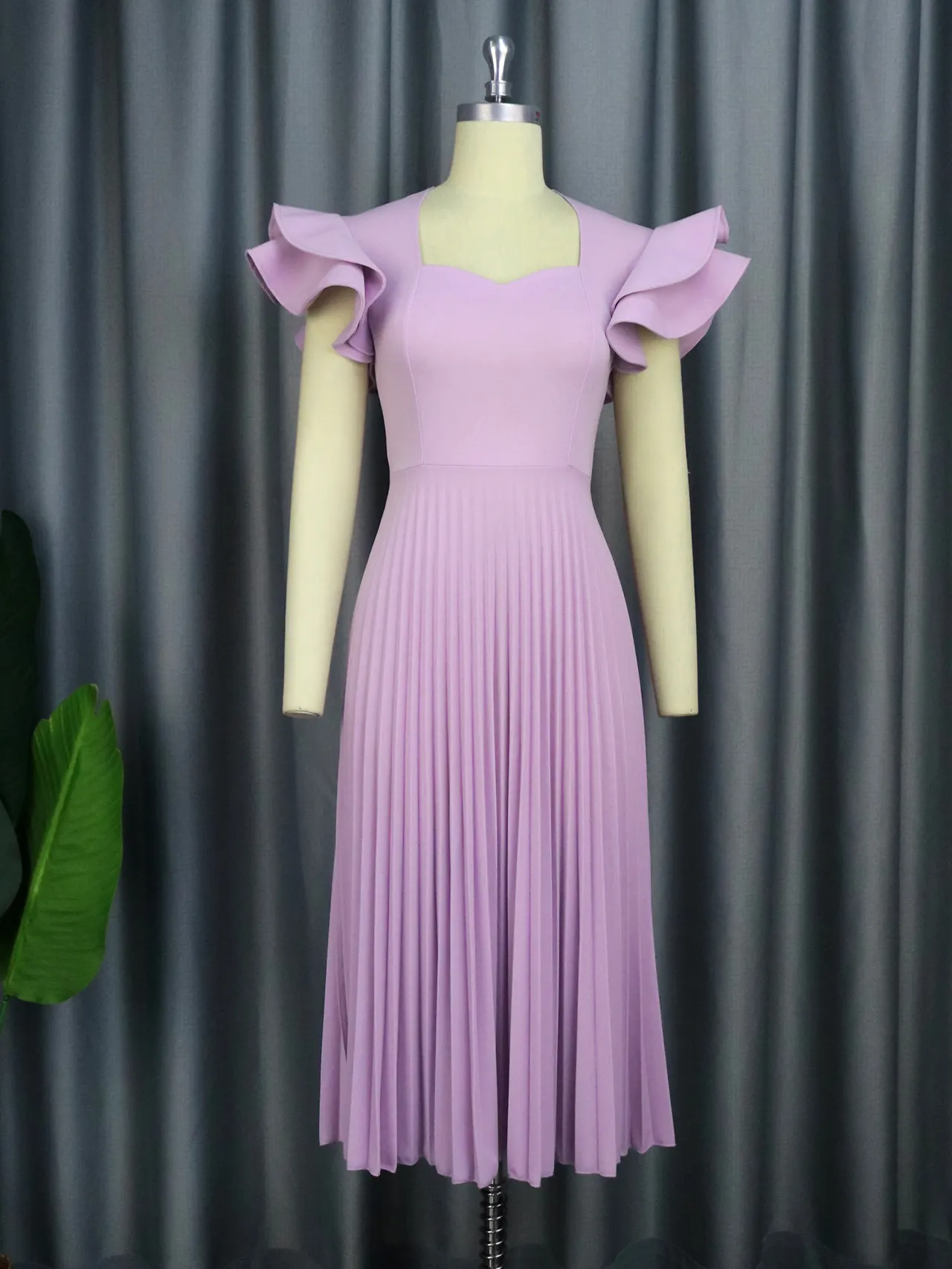 Light Purple Square Collar Graceful Pleated Dress - Light Purple