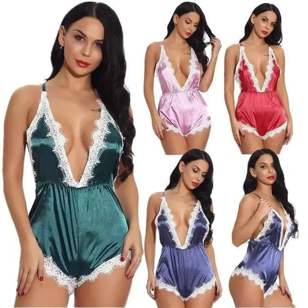 - Lingerie Satin Lace Pajamas featuring a back cross design
