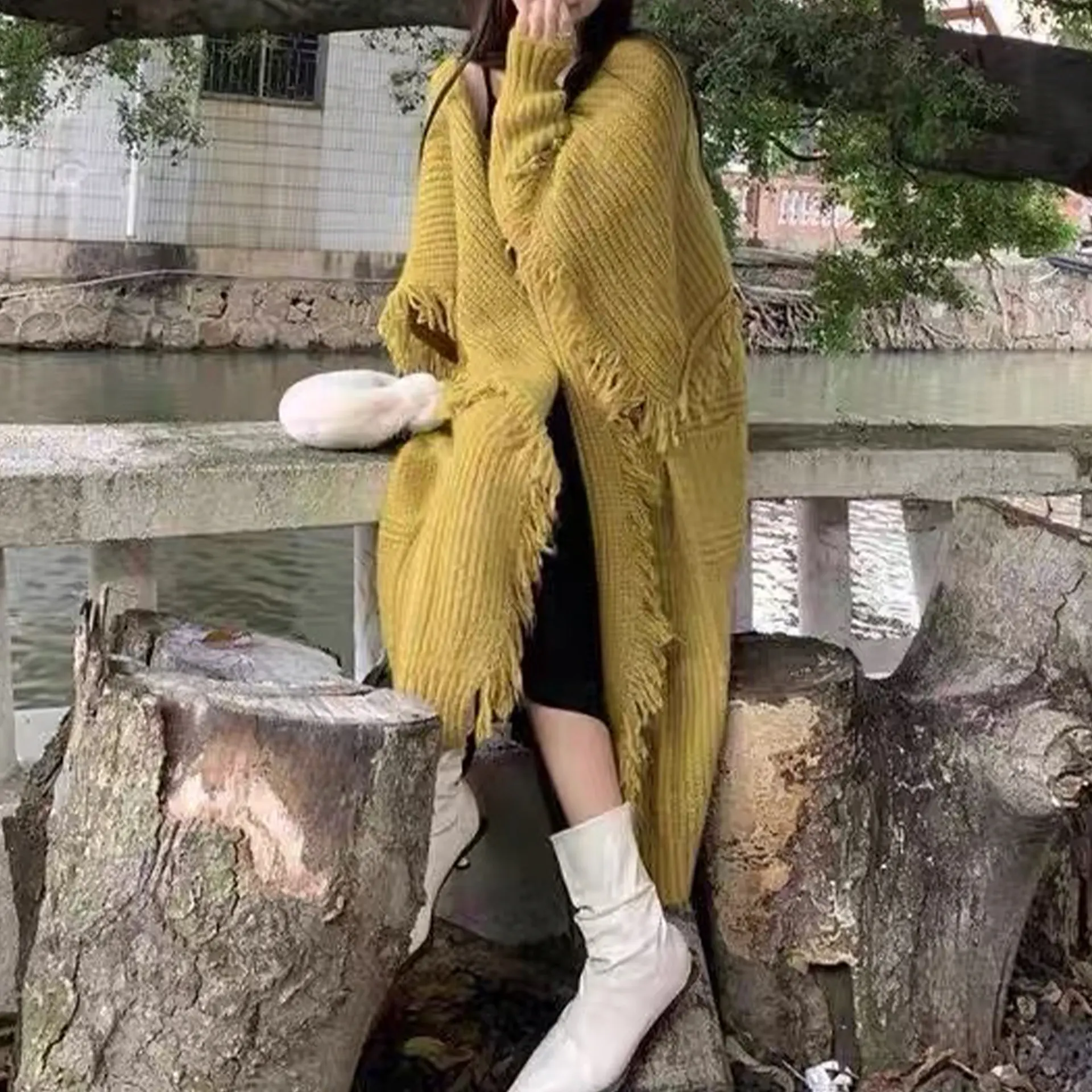 Long alpaca wool sweater jacket women's design feeling soft and waxy early spring cardigan loose Korean style lazy style Handmade Clothing Gift For Women Hand knit Outfit Of The Day Material: Alpaca blend