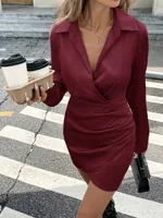 Product information: Color: Black, Burgundy, khaki, dark blue Waist type: high waist Size: XS,S,M,L Style type: temperament commute Combination form: Single piece Skirt length: short skirt Popular elements: splicing Style: splicing Fabric name: Satin Main fabric composition: Polyester (polyester fiber) Sleeve length: long sleeve Skirt Category: Dress Style: commute style Packing list: DRESS*1 Product Image:
