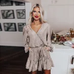 Long Sleeve Loose Relaxed Lace Up Dress - Khaki