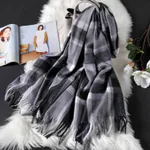 Long Tassel Double-sided Cashmere Shawl - 5 Vertical Grid