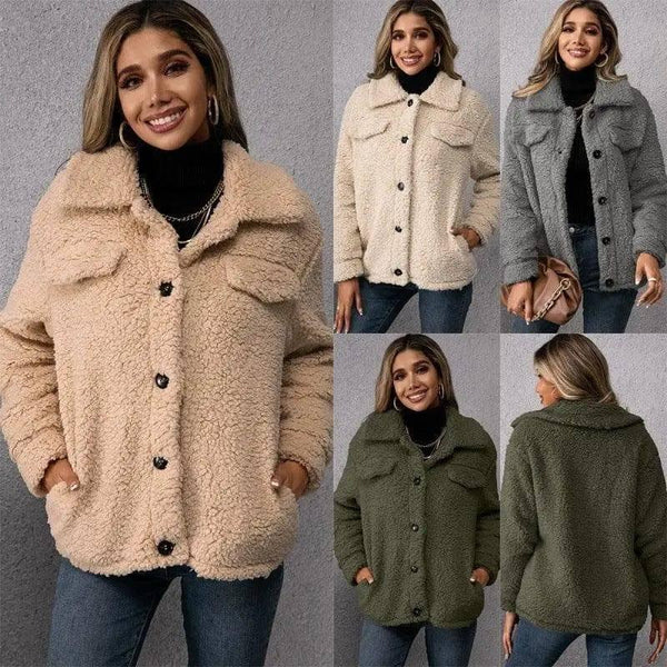 Loose Casual Lapel Plush Jacket Lamb Fleece Coat