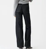 Loose Leisure Washed-out Button Slightly Flared Jeans - Navy