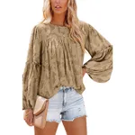 Loose Puff Sleeve Solid Color Round Neck Pullover Long Sleeve Top -