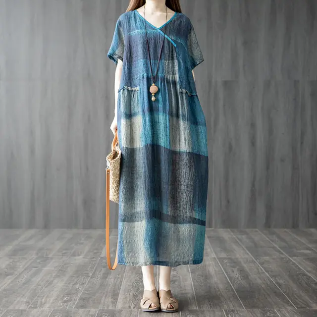 Product information: Skirt type: A- line skirt Color: red, blue Size: M,L,XL,XXL Style type: Art retro Skirt length: mid-length skirt Popular elements: splicing Style: Basic Fabric name: cotton blend Sleeve type: conventional sleeve Note: 1. Asian sizes are 1 to 2 sizes smaller than European and American people. Choose the larger size if your size between two sizes. differences due to . 2. Please check the size chart carefully before you buy the item, if you don't know how to choose size, please contact our customer service. 3.As you know, the different computers display colors differently, the color of the actual item may vary slightly from the following images. Packing list: Dress x 1 pcs Product Image: