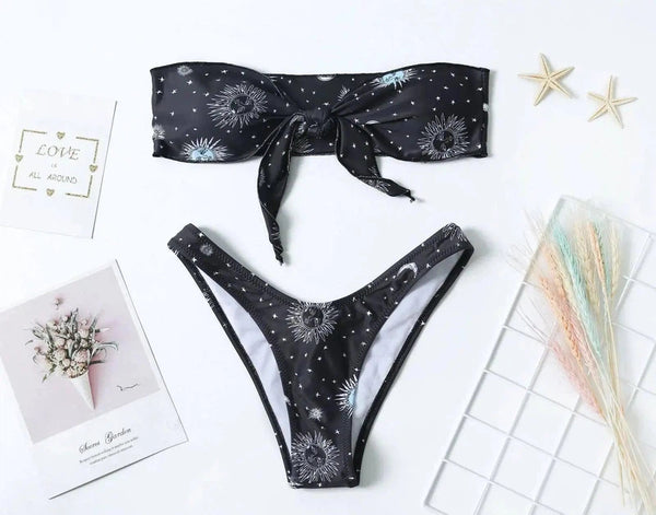 Product Description: Bikini Print Split Tube Top Swimsuit