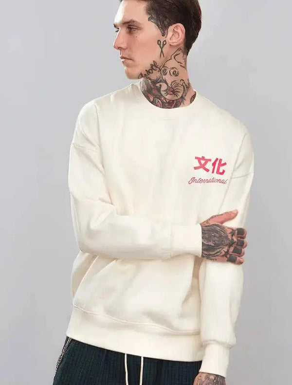 Chinese character printed round neck sweater