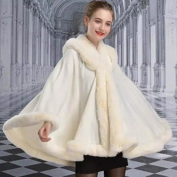 Double-layer Hooded Cloak Rex Rabbit Fur Collar