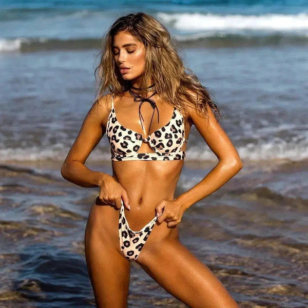 - Cut: Two-piece bikini, featuring a classic triangle top and bottom