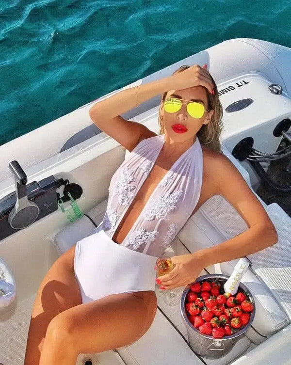 Embroidered Halter Lingerie Siamese Bikini