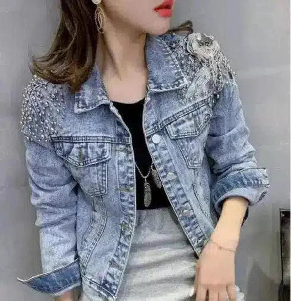 - Intricate Embellishments: Adorned with sparkling studs and intricate beading on the shoulder, this jacket adds a bold statement to any outfit.