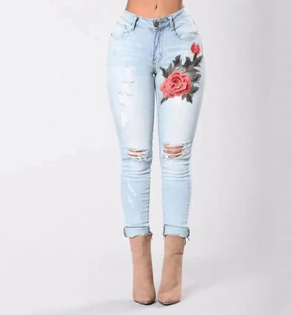 Fashion Hole Embroidered High-elastic Jeans Women's Trousers