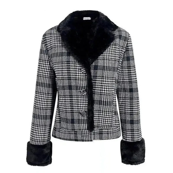 Houndstooth Coat with Faux Fur Trim