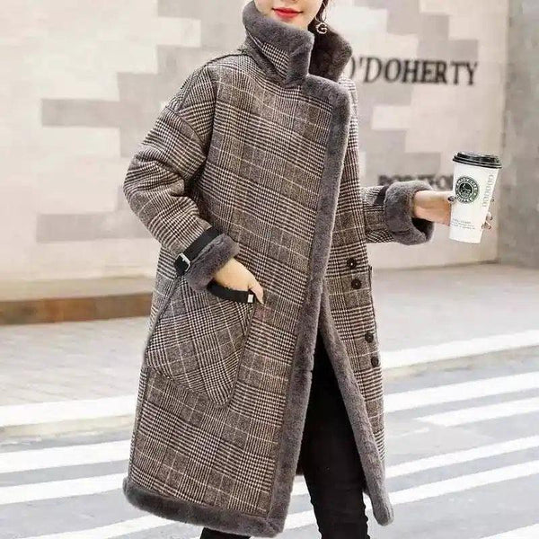 Korean temperament plus velvet thick mid-length woolen coat