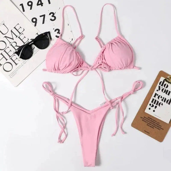 Ladies Swimsuit Solid Color Split Drawstring Thong