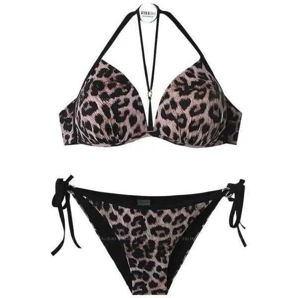 Leopard Bikini Three-point Small Breasts Gathered
