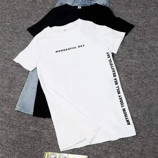 - Inspirational Messaging: "WONDERFUL DAY" printed across the chest adds a positive vibe, while a longer text running along the side seam provides an unexpected design element.