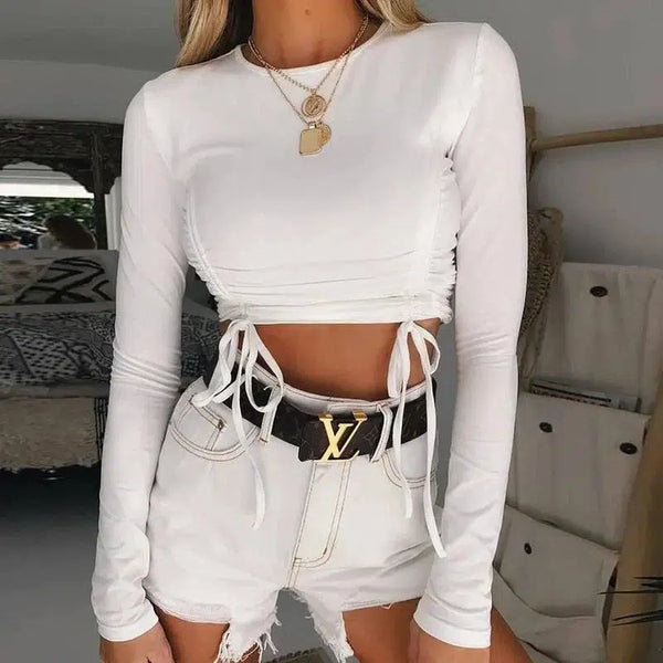 Long-Sleeved Tight-Fitting Crop Top